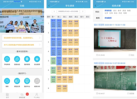 The Home-School Communication APP can view school news and class dynamics, their child's moral education and comprehensive quality assessment records, student semester archives, schedules, grades and analysis, classroom feedback, live classroom for online learning, recorded classroom for on-demand learning, view and submit online homework assigned by teachers, view personal error books and knowledge point maps (to keep track of their mastery of various subjects and knowledge points), view their access records and consumption, and report lost access cards.