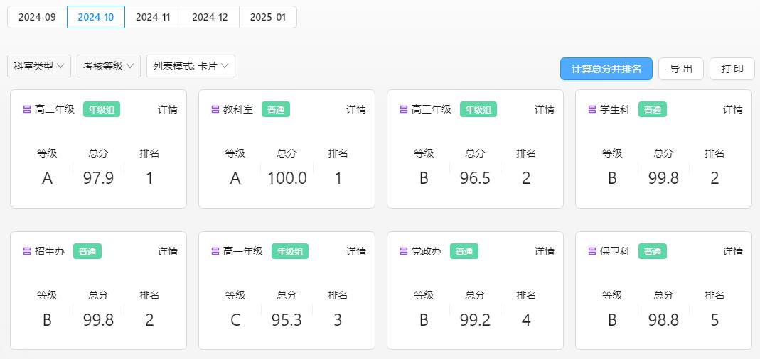 Assessment System (Faculty Assessment, Department Assessment, Class Assessment, Dormitory Assessment, Student Comprehensive Quality Assessment, Teacher Teaching Performance Calculation, Lesson Preparation Group Leader Assessment, Teaching Research Group Leader Assessment)