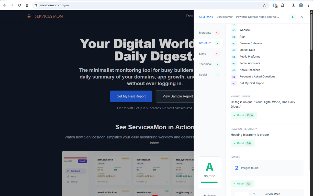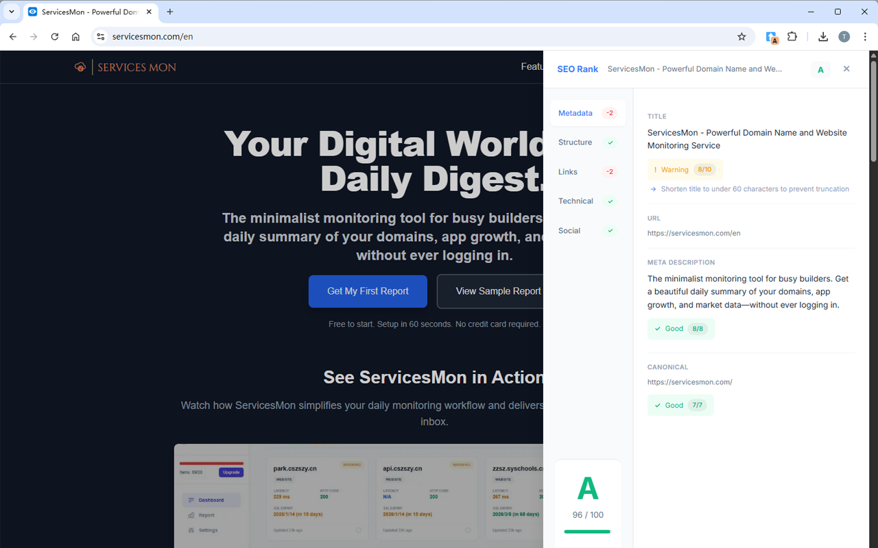Perfect for SEO professionals, content creators, and web developers who want quick, reliable SEO checks without leaving the browser.