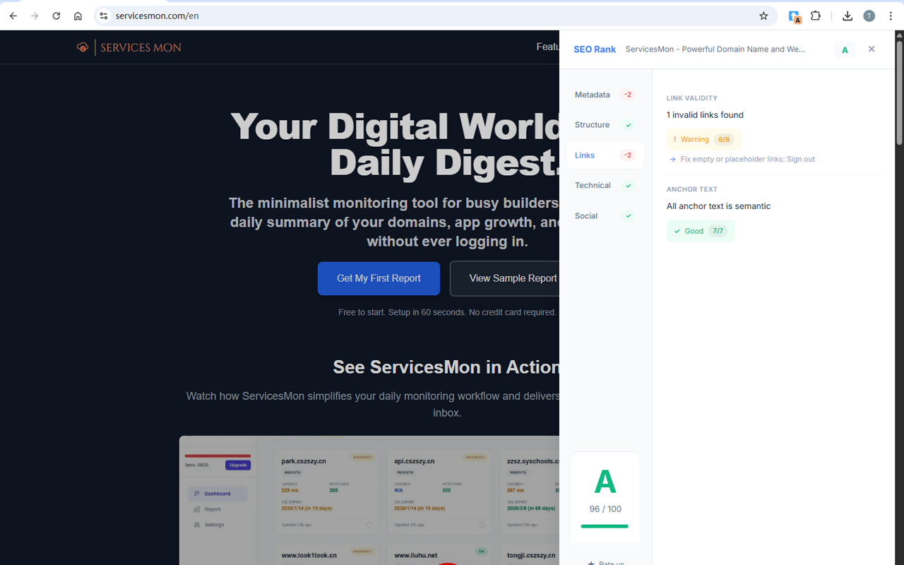 SEO PageRank analyzes any webpage in seconds and gives you a clear score out of 100.